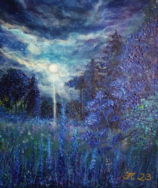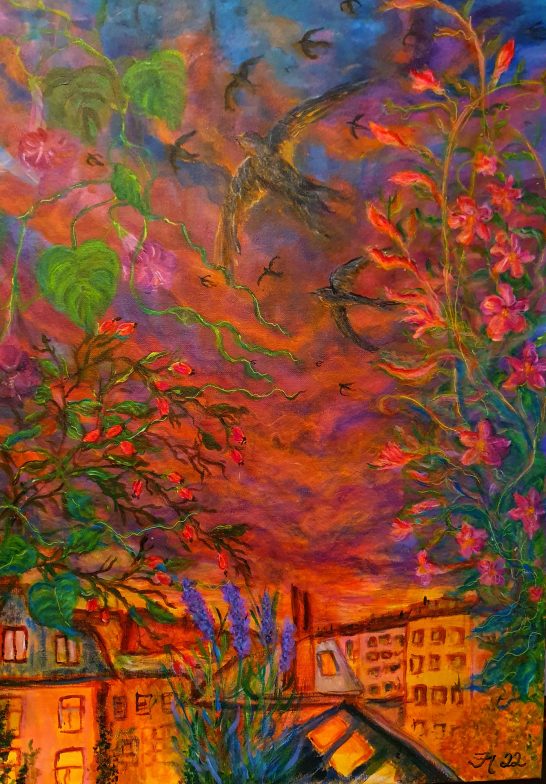Ich dachte lange Zeit, um richtig zu malen, würde mir die Technik fehlen. Aber nachdem ich 2021 währen der Corona-Zeit eine Chagall-Ausstellung besucht hatte, fing ich einfach trotzdem damit an. Seitdem hat es mich nicht mehr losgelassen. Mit meinen vom Impressionismus inspirierten Acrylgemälden versuche ich, die Magie meiner Welt einzufangen.